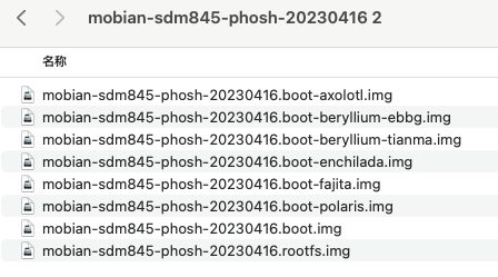 cd ~/Downloads/tar -zxvf mobian-sdm845-phosh-xxxx.tar.gz #xxxx为日期戳解压出来的文件